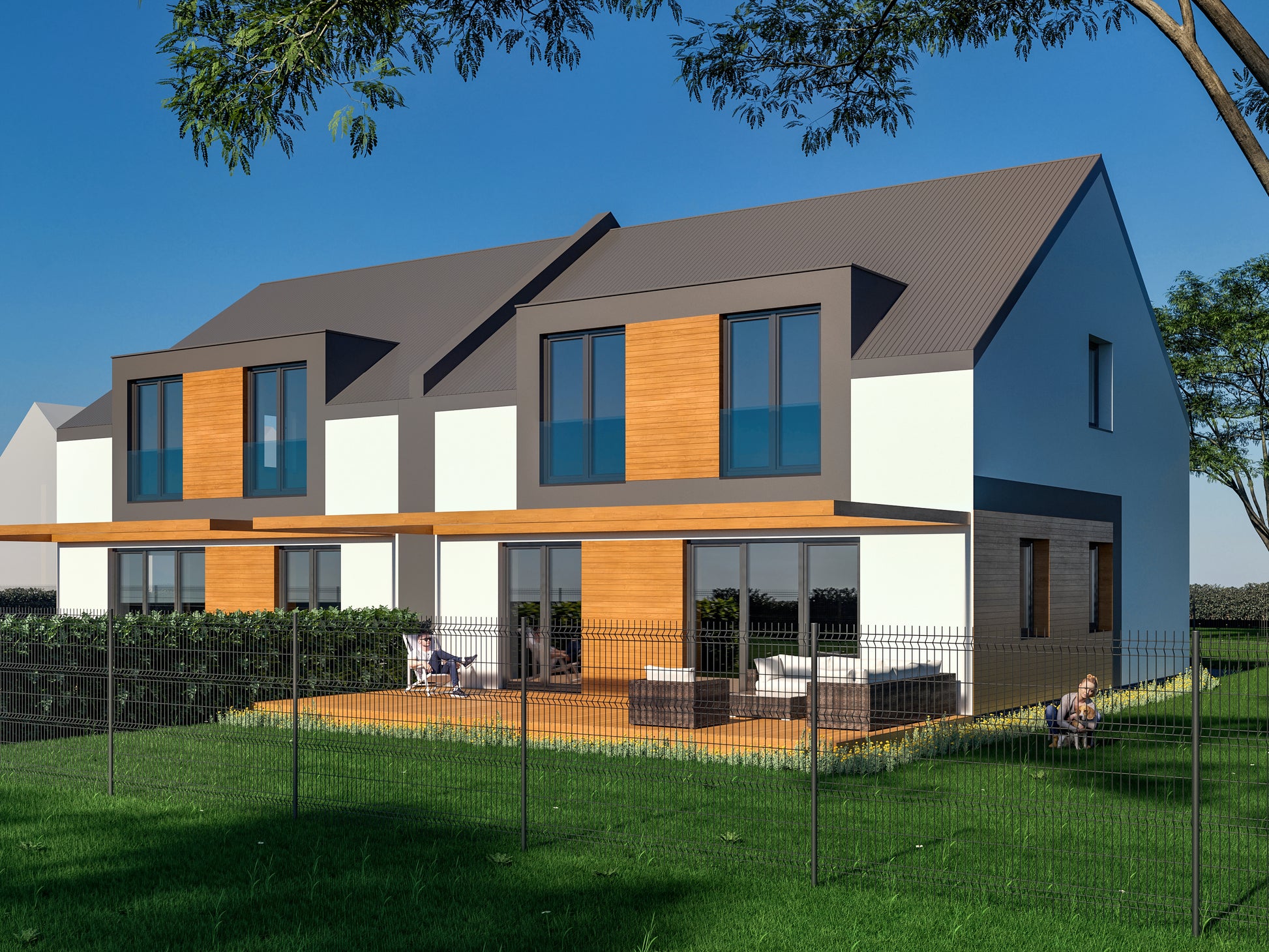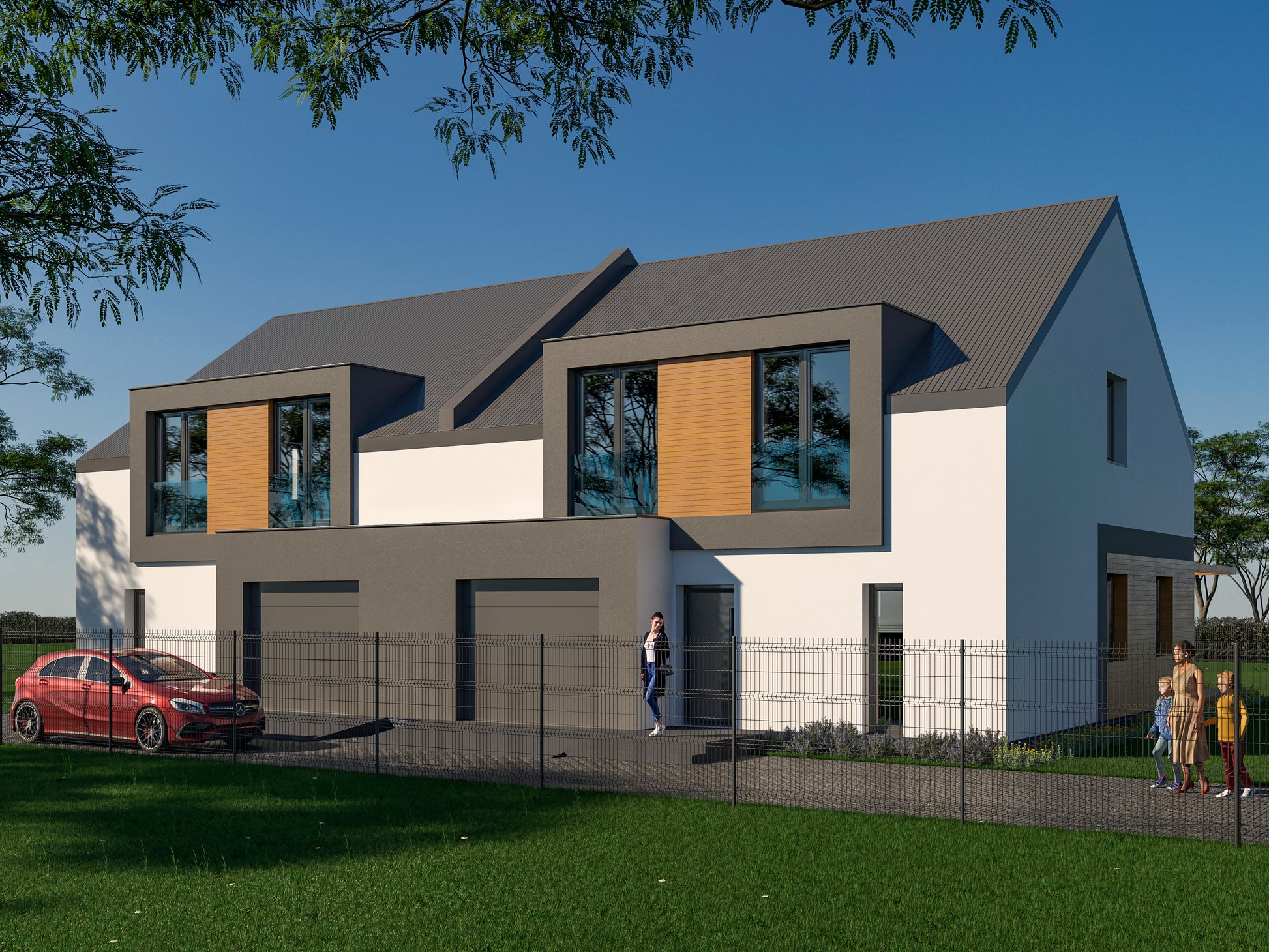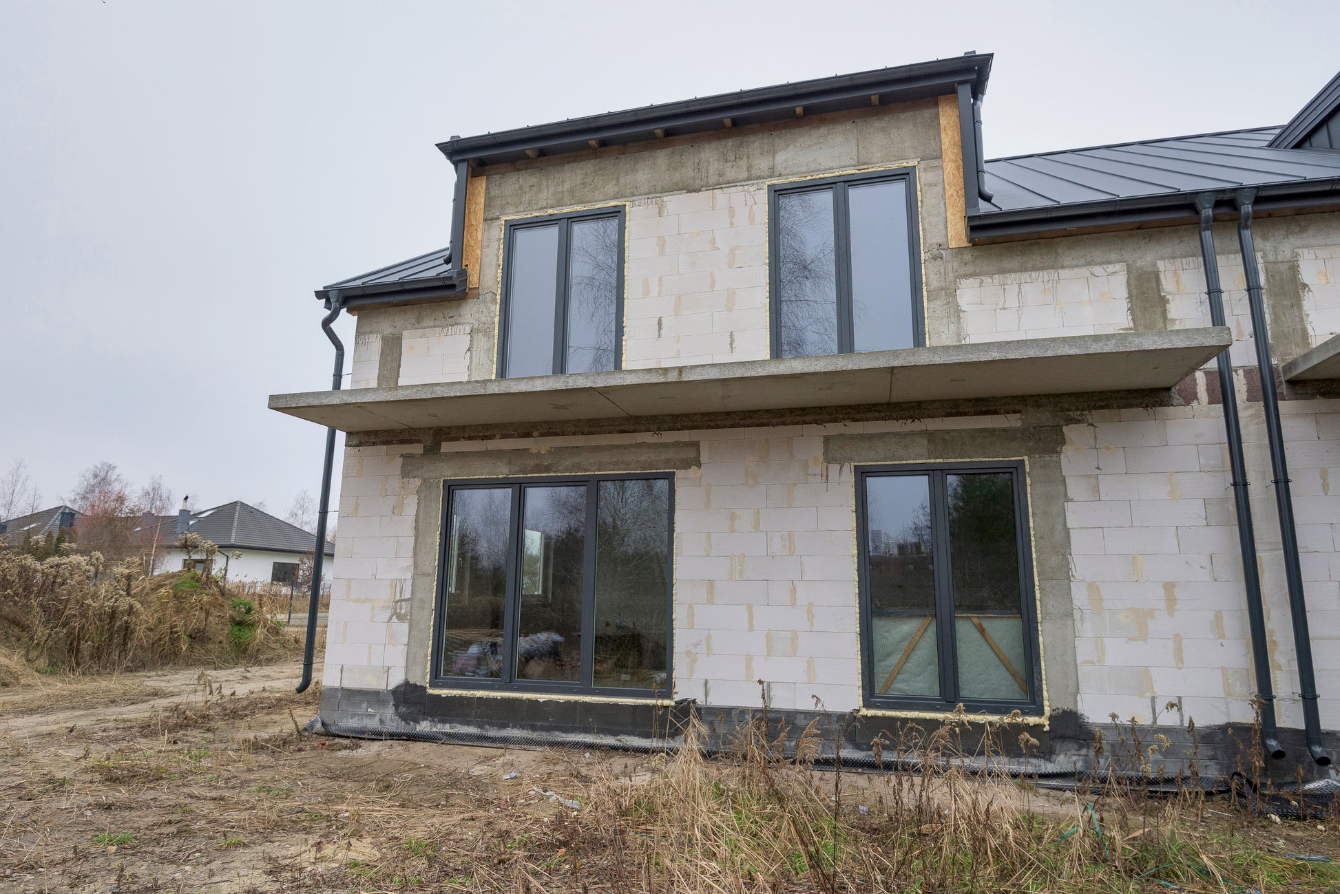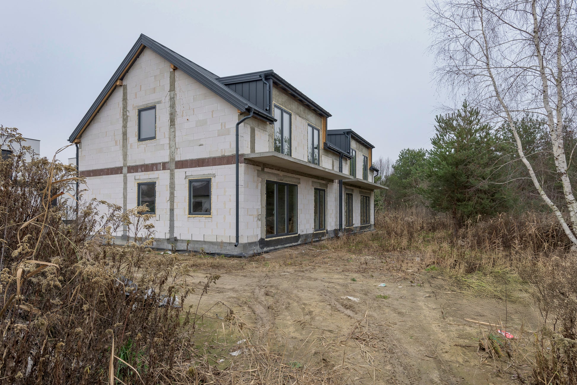 Dom oferuje funkcjonalny i wygodny układ, odpowiedni dla rodziny. Duże przeszklenia zapewniają dobre doświetlenie wnętrz. Stan deweloperski daje możliwość aranżacji według własnych potrzeb.
